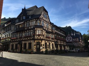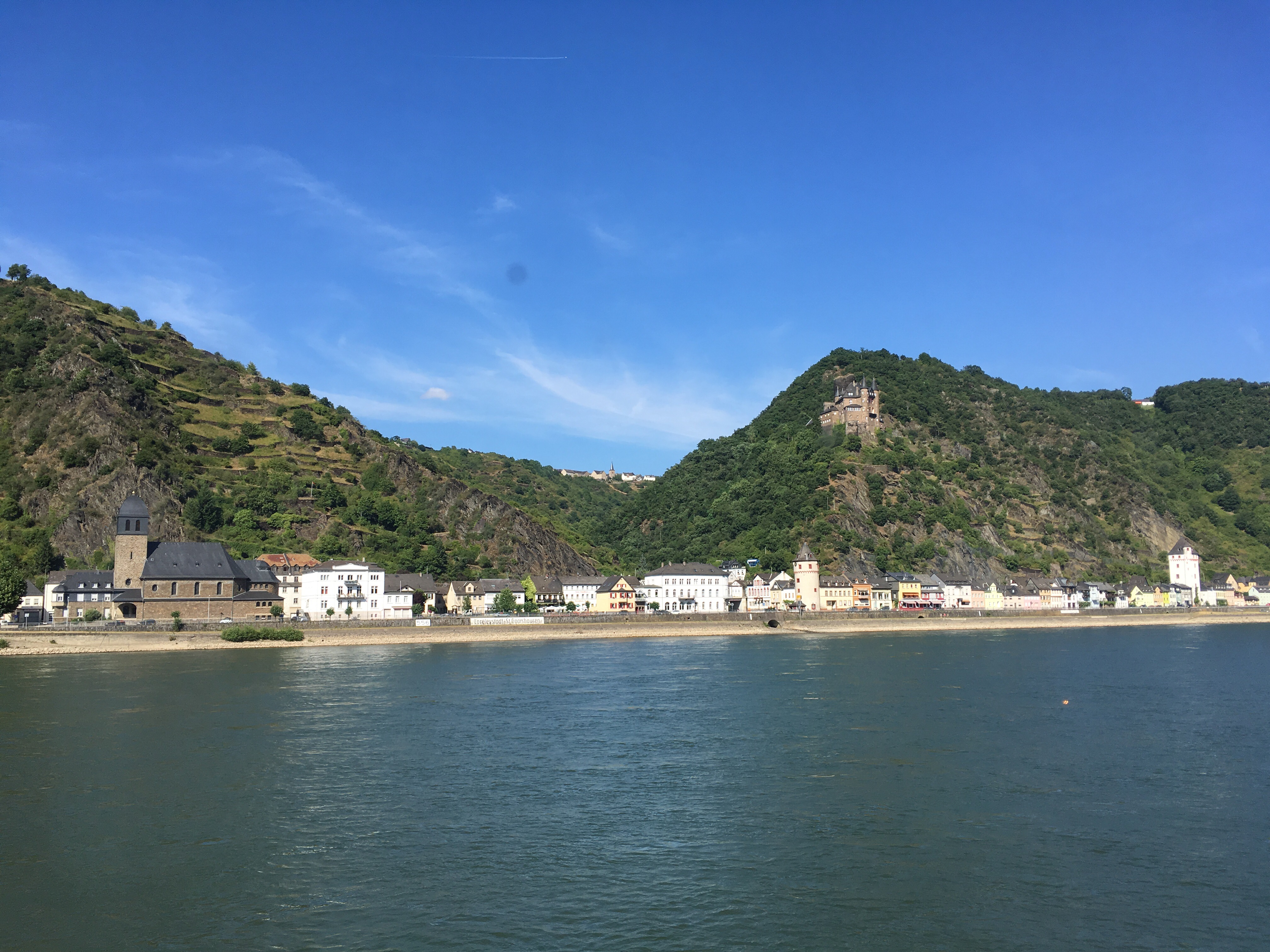 We did a little road trip to Germany to do some sightseeing. First up was Eltz Castle. It’s impressive! We had to wait for a tour initially and then a second time because we weren’t given tickets when we paid to get in. This delayed our timeline a bit, but we had a coffee break and then finally a nice tour of the castle. There was a group of nuns ahead of us and we realized later that the owner of the castle was their tour guide. Our plan was to drive to Koblenz, have lunch, and then pick up a 2pm boat for a ride on the Rhine River. We were a bit pressed for time, but we made it there in time to get on the boat and ended up having a relaxing lunch on board the boat. The weather was perfect and we had an awesome 4.5 hr ride on the river. We passed by lots of castles, vineyards and picturesque German towns. We disembarked at Bacharach, which is looks like something out of a storybook. Jasmine remarked that it was like being at Disneyland instead of real town. We strolled around the streets of half-timbered houses and walked a path along a vineyard before finding our restaurant for dinner. The restaurant had a scenic courtyard, great Riesling and yummy German food. We had to wait awhile for the next train back to Koblenz, so it ended up being a late drive home — so worth it though. What a perfect day!