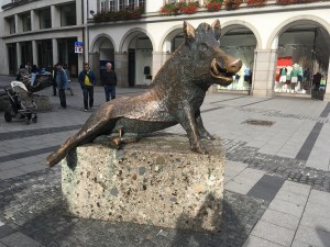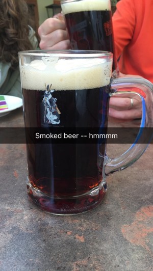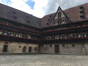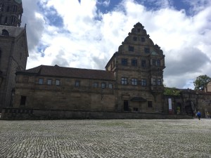 We decided to go to Bamberg in the morning anticipating that we could cover the sights there in a few hours. It turned out that we really loved it there and could have stayed the whole day. What a beautiful town! The weather turned favorable and it was great to see the wonderful architecture and gardens in the sunshine. We sat at a café near the landmark bridge for awhile and tried some smoked beer (because of the local uniqueness of it). It doesn't sound good, right? It tastes like beer initially and then a smoky aftertaste hits — kind of like an ashtray might taste — ick.