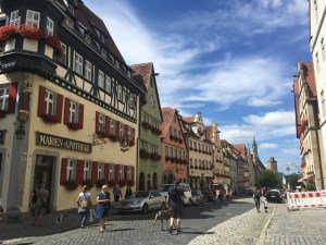 Rothenburg ob der Tauber is a lovely place that typically shows up on lists of quintessential must see German towns. Hitler apparently thought it was quintessential also and it was a Nazi stronghold. Anyway, we started our last day there with schneeballen and coffee. We browsed the shops, including the original Käthe Wohlfahrt Christmas store. Then we walked up to the fortress for another nice view. The gardens there were very nice. Lunch was flammkuchen for each of us, which were bigger than we expected. So much for a lite lunch! After that we walked on part of the fortified wall to get back to our car.