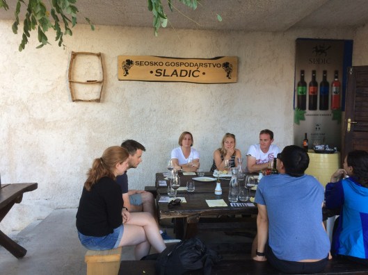 From the park, we boarded a ferry which took us to Skradin. We met up with our tour group there and took a short drive to a winery. It’s a family owned winery where they do all the work themselves from planting, harvesting, fermenting to bottling. The wine industry is relatively small in Croatia and it’s only for domestic consumption (no exports). Along with some bread and cheese, we tried three wines and a grappa (small amounts!). Our group, which consisted of four Brits and five Americans, all sat at a big table and chatted while we ate and drank; it was a nice way to end the excursion.