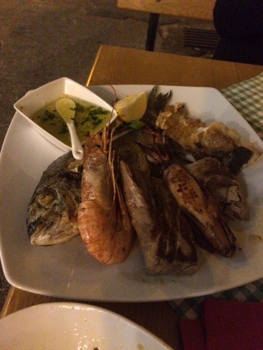 Our day ended with a seafood feast and black risotto at an authentic Croatian family restaurant. The catch of the day was shown to us on a platter before we made our choice. I liked the squid and hake the best. The black risotto is made with cuttlefish ink and chucks of squid. The dark black color and thoughts of eating ink are a little off-putting, but it was delicious!