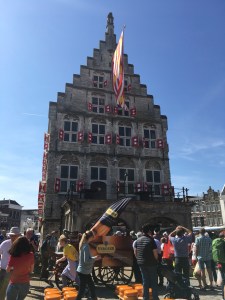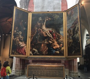 It was a little cooler on Monday, but still sunny! Dick had some work to do, so Michelle, Jared and I drove to Antwerp. We hit some traffic going in, but had just enough time to make it to the 11:30 free walking tour. I took a wrong turn on our walk in and we happened upon a neighborhood of Hasidic Jews — which happened to be very close to the long row of diamond jewelry shops. The tour guide provided us with some interesting stories about the history of Antwerp, though her sense of humor kinda fell flat due to her awkward English. We went searching for frites and waffles after the tour and a visit to the cathedral (I wanted to see the Ruben altarpieces). A swing by the gorgeous train station completed our trip and we got out of town before the worst of rush hour traffic hit.