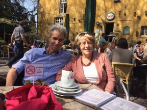Els & Frans (cousins) came for a weekend visit. On Saturday, we had a nice walk on one of our favorite trails in Valkenburg and took a relaxing break at a gezellig café along the way. We showed them around Valkenburg a bit and had lunch at one of the many restaurants there. It was the first warm sunny day of spring! It was nice to be able to sit in our garden at home that evening. We attended the Kom en Zie church in Schinnen Sunday morning. The people there are super friendly and the place was full. The worship was mostly in Dutch, but the songs were familiar to me so I tried to sing the Dutch words (projected on the wall). The speaker was enthusiastic and kept my attention even though I didn’t understand most of what he was saying. Els helped by giving me some translation. It was another pleasant weather day, so we had a barbecue lunch in the garden and enjoyed the sun. It was such a nice visit!