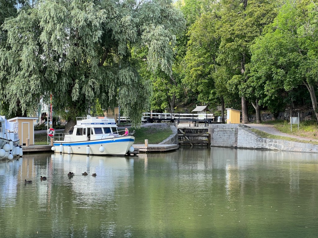 The bus took us through the southern part of Sweden. There wasn’t much to see from the highway, but there was some pretty agricultural land. We did a lunch stop in a small town with a historic canal and typical Swedish wooden houses. This was the location of today’s curious siting. 🙂 We also had a brief rest stop for fica.